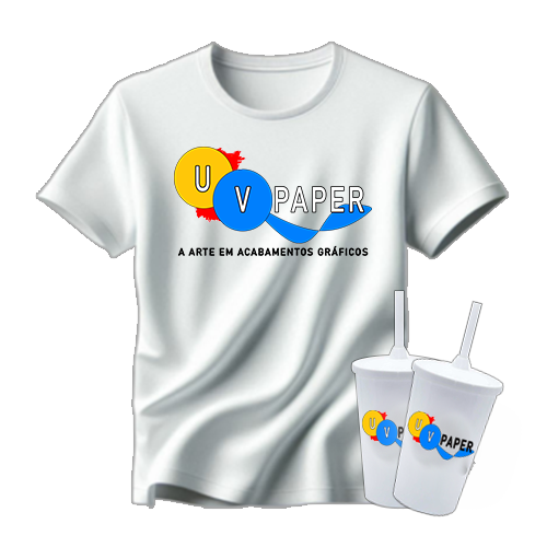 Estampa de desenhos, nomes, cores e diversas outras coisas em camisetas, copos, entre outros objetos.